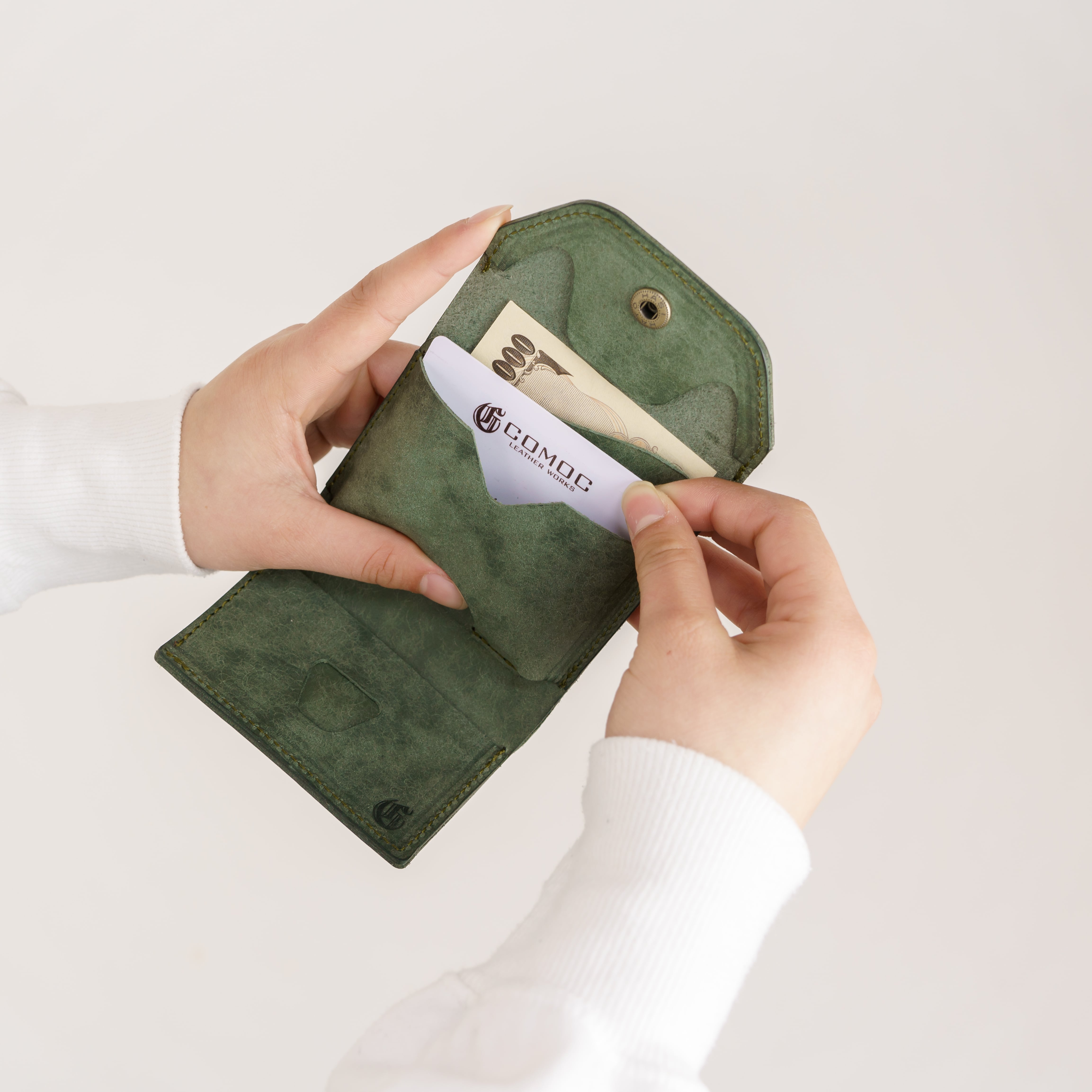 最近は、スマホのQR決済やクレジットでの支払いが増えてきたけど、現金も少しは持っていたい、という方にピッタリのコンパクトな三つ折財布です。